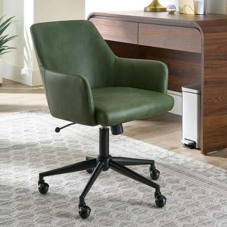 Serta Hemsworth Mid-Century Modern Style Armchair, Navy Blue Faux Leather