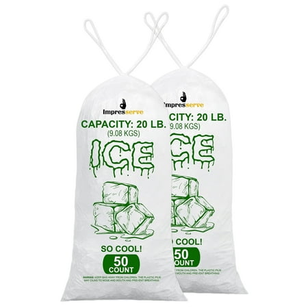 Impresserve 20lb Plastic Ice Bags with Drawstring Closure – 100 Count