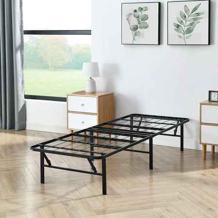 Mainstays 14" High Profile Foldable Steel Twin Platform Bed Frame, Black
