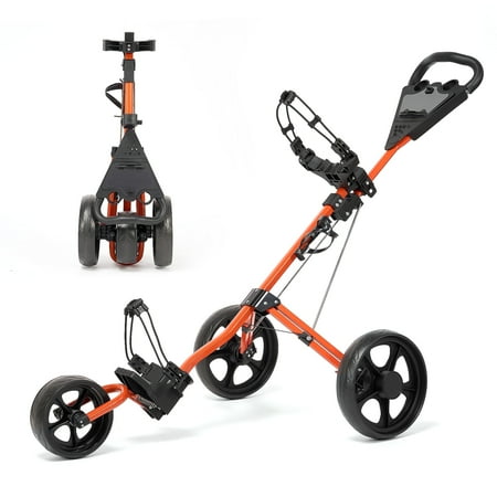 Naipo Golf Cart Push Bag Folding 3 Wheels Golf Pull with Scoreboard Adjustable Handle Large Wheelbase for Different Terrain, Orange