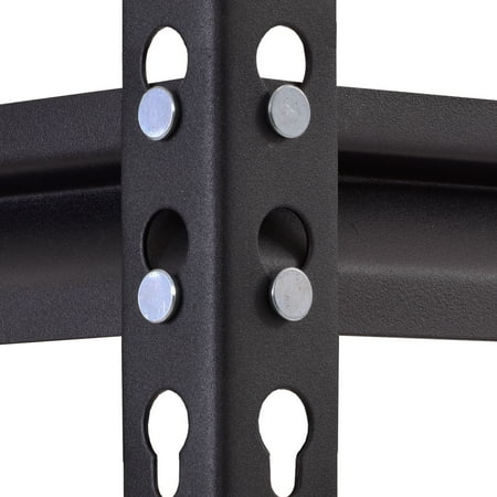 Its sturdy frame has a powder coat finish that resists abrasion, chipping, and corrosion for lasting strength and durability. This versatile shelving unit can store a variety of items, large or small, with the convenience of shelves that are adjustable every 1.5 inches. Heavy items are no problem, each sturdy particleboard shelf holds up to 800 pounds of evenly distributed weight.