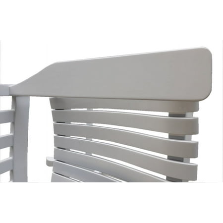 A traditional yet elegant slat design gives our Mainstays Outdoor Wooden Porch Rocking Chair, White Color a timeless classic look. The contoured seat, curved back, and high arm rests provide extra comfort. Made from sustainable FSC certified solid Acacia hardwood, together with the protective paint finishes, the chair is a perfect addition to your front porch, balcony or other outdoor covered space for all season relaxation. It can also be used indoor so you can enjoy a quiet moment rocking peacefully in the coziness of your home