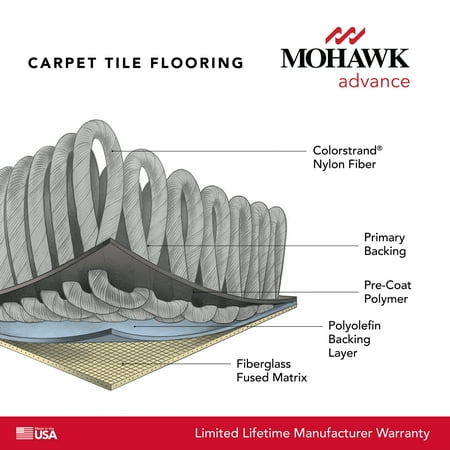 Mohawk Advance Carpet Tile with EnviroStrand™ PET fiber is high-performance carpet tile that delivers color intensity in a variety of looks and colors. The easy-install carpet tiles feature added soil protection, ensuring suitability for high-traffic areas. Mohawk Advance also features added stain protection, which helps protect against stains on your carpet tile floors. This easy-to-maintain flooring is also easy to install whether you choose to glue it down or use FlexLok tabs (sold separately) for a floating installation. Once installed, the dimensionally stable carpet tile flooring will lay flat, so you don't have to worry about warping over time. This carpet tile floor is perfect for installation in the basement, home office, gym, playroom, bedroom, living room, and more. Committed to innovation, performance, and sustainability, many of Mohawk’s collections have changed the face of flooring. Mohawk is renowned for creating unique products that add style to any space.