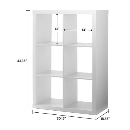 Add function and style to your home with the Better Homes & Gardens 6-Cube Storage Organizer. Available in multiple finishes, including both solid and wood grain options, this cube organizer features six 13" x 15" x 13" compartments, the perfect size to display books, collectibles, photos, artwork, storage bins and baskets. An open back design makes it easy to manage cords and cables. This sturdy bookcase can stand vertically or horizontally to best suit your needs and space. The top panel supports up to 100 lbs and each cube supports up to 51 lbs. Combine it with other Better Homes & Gardens Cube Organizers and Cube Storage Bins (sold separately) to create a complete, customized storage and display system. Easy to assemble with included wall attachment system, the Better Homes & Gardens 6-Cube Storage Organizer is perfect for your office, living room, den, playroom and more.