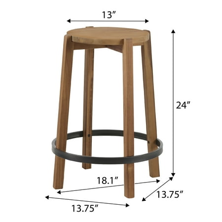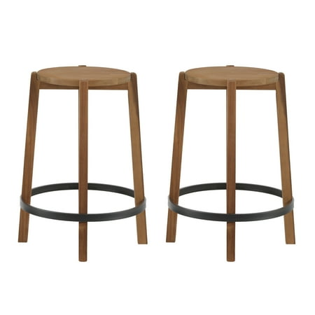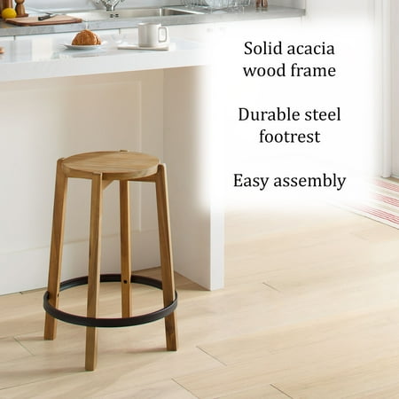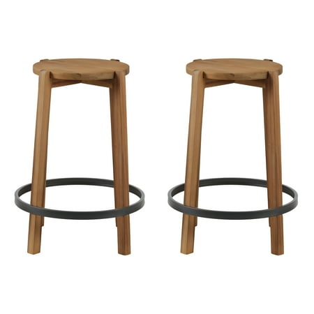 The Mainstays 2-Pack Modern Wood Backless Indoor Counter Stool is 24" High. With its wood finish and black footring it gives a minimalist modern look upgrading any kitchen area while transitioning effortlessly. The stool is made with care as the design features a dado joint for more support, a metal footring, and nylon foot caps. The counter stool features easy assembly with a 90-day warranty. This backless barstool is suited for any event or for use at home as extra seating. Recommended for indoor use only.