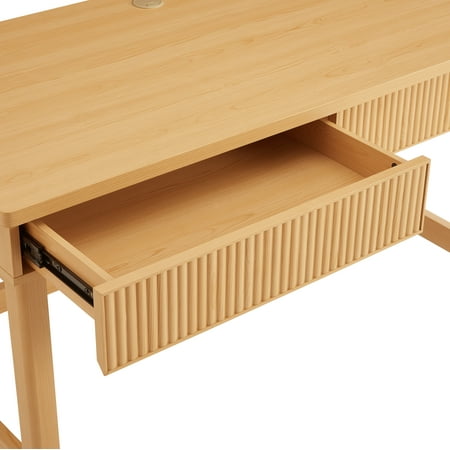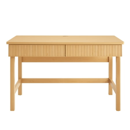 Create a modern and functional workspace with the Lillian Fluted Desk from the Better Homes & Gardens Desks Collection. Featuring a natural pine finish and sleek design, this versatile desk complements various décor styles, including modern, cottage, and coastal. The fluted design with vertical grooves on each drawer adds texture, while two small storage drawers and an integrated wire management cutout help keep your space organized. Its sturdy construction ensures long-lasting durability, making it a great addition to any home office or family command center. The Lillian Fluted Desk also offers ample space for your computer, documents, and office supplies. Pair it with other pieces from the Lillian Fluted Collection, including tables, cabinets, and office seating, for a cohesive, stylish look throughout your home.