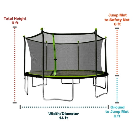 Turn your backyard into a playground with the BouncePro™ 14’ Round Trampoline with Safety-Enclosure in Green and Black. Ready, set, bounce. BouncePro™ trampolines are built for safety, durability, and all-day fun. Exceeding ASTM standards by over double, our trampolines feature a galvanized steel frame, UV-resistant materials, and patented double-welded plates on frame and leg connections. The 360° safety enclosure and padded protection keep kids secure season after season. Backed by 20+ years of expertise, Sportspower™ delivers quality play at unbeatable value with an US-based customer service team always ready to assist.