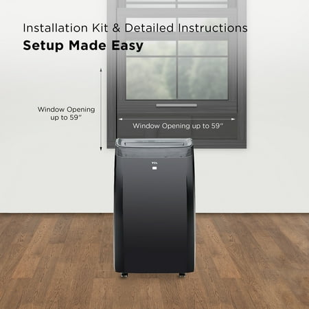Stay cool the smart way with the powerful cooling capacity of the TCL 10,000 BTU Smart Portable Air Conditioner featuring AC, Fan, and Dehumidifier modes. The fan circulates air while the AC helps you easily adjust and manage temperatures in rooms up to 450 sq. ft. Additionally, the dehumidifier function helps to reduce moisture in your home. The user-friendly TCL Home App lets you control your unit from anywhere, change the temperature, set schedules, and more. You can use simple voice commands to control your portable AC when paired with Alexa or Google Assistant-enabled devices. The washable and reusable filter helps protect your portable AC's life while reducing large airborne particles like dust and pet hair. Setup is made easy with the included installation kit and guided in-app instructions that will have your unit up and running in minutes. The two handles and four wheels make this portable air conditioner easy to glide from room to room, keeping you cool in any room with a vertical or horizontal sliding window.