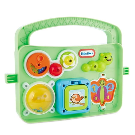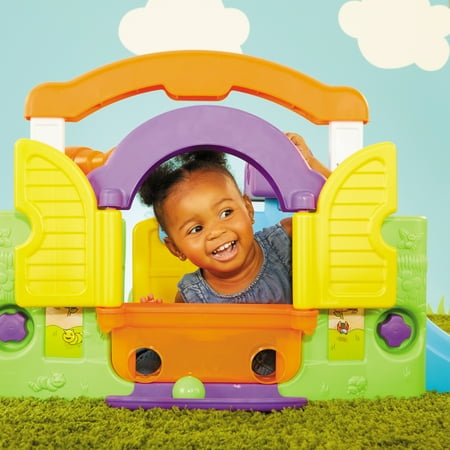 The Little Tikes Activity Garden easily converts from a closed play center to an open, two-sided play center without tools to grow with your child. The removable take-along play panel features a bead tumbler, mirror, spinning "gears," and even plays music. The window shutters open and close to play a game of peek-a-boo. For more fun games, use the window planter for ball drop play. The mailbox allows children to pretend to receive 'mail' as well as learn shapes and colors. The Tap-a-TuneĀ® Piano has colored chimes and buttons to encourage your child to experiment musically.