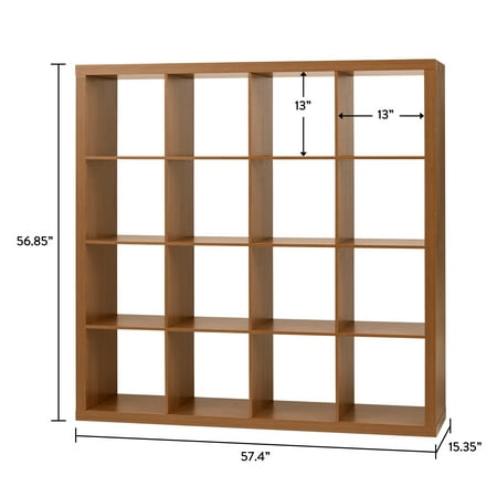 Add function and style to your home with the Better Homes & Gardens 16-Cube Storage Organizer. Available in multiple finishes, including both solid and wood grain options, this cube organizer features sixteen 13" x 15" x 13" compartments, the perfect size to display books, collectibles, photos, artwork, storage bins and baskets. An open back design makes it easy to manage cords and cables. The top panel of this sturdy bookcase supports up to 100 lbs and each cube supports up to 30 lbs. Combine it with other Better Homes & Gardens Cube Organizers and Cube Storage Bins (sold separately) to create a complete, customized storage and display system. Easy to assemble with included wall attachment safety system, the Better Homes & Gardens 16-Cube Storage Organizer is perfect for your office, living room, family room, playroom and more.