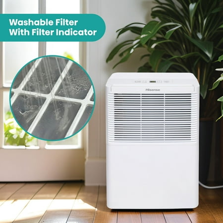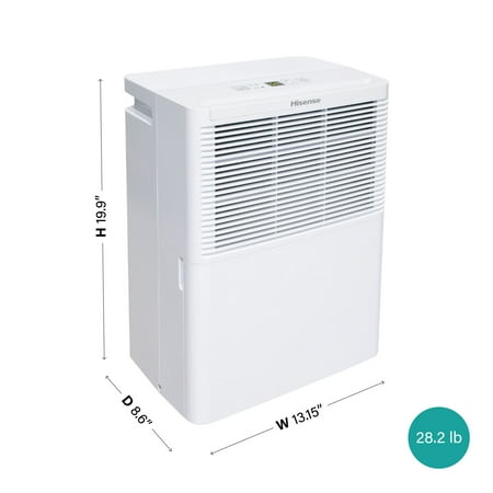 This Energy Star 25-pint dehumidifier quietly collects water and Hisense 25-Pint 1500 Sq ft Dehumidifier for basement, garage, bedroom, AHD2524K1W. removes it from the air for a more comfortable home environment. Excess moisture is collected in the slide-out, 8.5-pint internal bucket or can discharge the water via connecting a standard garden hose through the side of the cabinet and into a low level drain. Reliable and eco-friendly, this dehumidifier can operate at temperatures as low as 38 degrees F to keep large rooms like garages or warehouses up to 1500 square feet moisture free. Easy digital controls and the very low sound level make this a versatile choice. The full tank alert feature automatically shuts off the unit when the bucket is full so there is no risk of overflowing. Additional features include an adjustable humidistat so you can customize your desired humidity level. The maintenance is simple thanks to the washable and removable air filter and the 2 year warranty gives you peace of mind while you relax and enjoy drier, more comfortable air.