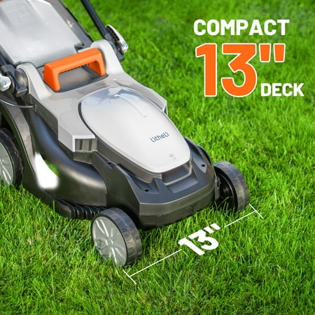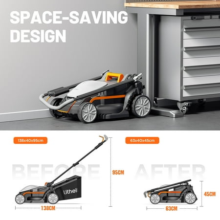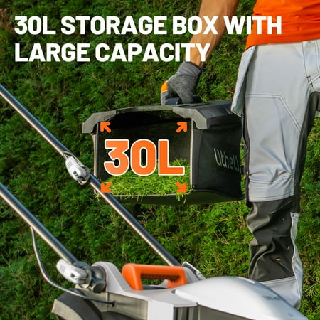 【Adjustment Heights】Easily adjust the cutting height with our 5-speed settings to achieve your desired lawn height effortlessly. 【Efficient Collection】The spacious 8-gallon grass collection box makes grass collection convenient and hassle-free. Our enhanced airflow design boosts the grass collection rate by an impressive 50%. 【Precision Blades】Experience durability and precision cutting with our high-strength blades featuring laser cutting technology. 【Convenient Storage】Save space with the foldable handle designed for compact, vertical storage. 【High-Performance Battery】Litheli lawn mower offers up to about 10-15 minutes runtime at a full charge of a high-capacity 2*2.0Ah battery pack. Actual runtime varies depending on lawn condition and operation technique. For longer powering, you can purchase additional batteries. Click Here ###Note### 1.The battery pack has been placed in the charging compartment of the lawnmower. 2.The product only includes charging cables. However, any 45W PD (Power Delivery) charger can be connected to the USB port to charge the battery.Please fully charge the battery before using our product.