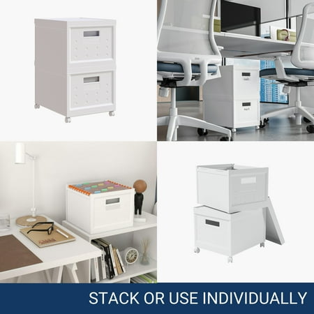 Declutter your space with this set of 2 rolling storage boxes with lids, perfect for organizing and filing documents. Each box includes 10 letter-size file folders (20 total) to keep your paperwork neat and accessible. These stackable plastic storage bins with wheels are ideal for home, office, or classroom use. The removable lids protect documents from dust and dirt, while the rolling design makes it easy to move your files wherever needed. Whether you're setting up a portable filing system or organizing important paperwork, these durable storage boxes offer a practical solution.