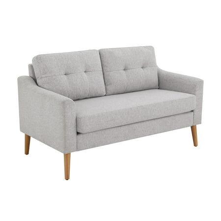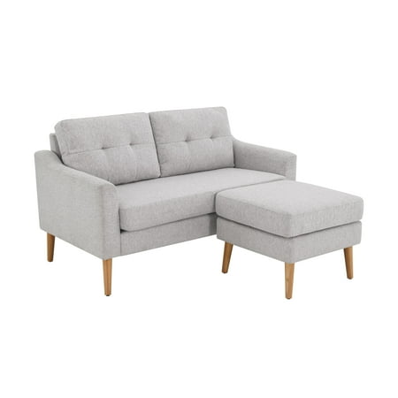 Kick your feet up on the Serta Brighton stationary sectional loveseat. This versatile piece, comprised of a stationary loveseat and a movable ottoman, is easy to assemble and gives you space to properly relax. Keep it as a loveseat and ottoman, or rearrange the cushions to create a small-space-friendly sectional! The compressed seat and back cushions are packed with high density foam and pocket coils, adding a thick layer of comfort atop the sturdy wooden legs and solid hardwood frame. The boucle fabric upholstery is soft and easy to clean, giving you the peace of mind to enjoy this loveseat every day.