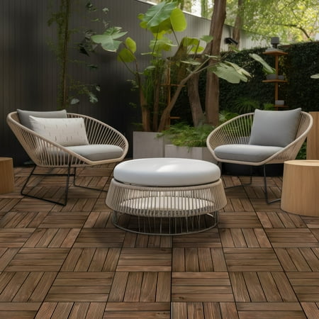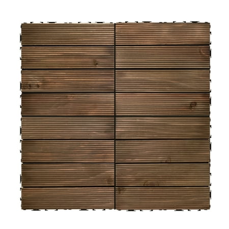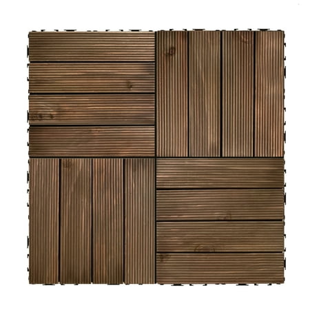 OutdoorZ Interlocking Wood Deck Tiles are the perfect solution to transform any outdoor space into a stunning oasis. Simply lay the tiles down on any flat and solid surface, interlock the connectors on each side of the tiles and watch your dream deck come to life in no time; all without the use of any tools or professional assistance! Each tile is constructed of 4-100% pine wood planks. Each plank has natural imperfections with natural variations in color for a fabulous appearance and texture. Because each plank is attached to the connector tray, OutdoorZ Interlocking Wood Deck Tiles are easy to customize and update any space. Whether you have a small balcony, a sprawling patio, a cozy rooftop terrace, or an all-weather porch; OutdoorZ tiles can be effortlessly adapted to meet your specific needs. They can be easily be taken apart for storage or used in a different configuration. Elevate your outdoor living space today with OutdoorZ Interlocking Deck Tiles. Each set comes with 27 12-in x 12-in Interlocking tiles, 27 Sq.Ft. per box. Each tile measures .8-in thick.