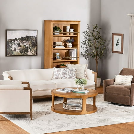 Add style and storage to any room with the My Texas House Haven 5-Shelf Bookcase. This bookshelf has a warm brown finish with antique gold metal accents for a classic touch. It includes five shelves, three of them adjustable, so you can fit books, photos, or décor of all sizes. The sturdy build and anti-tipping hardware help keep it safe in busy homes. Simple, stylish, and practical—this bookcase works in a living room, home office, or reading nook.