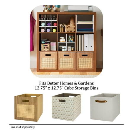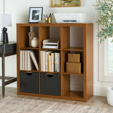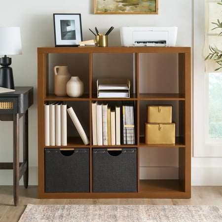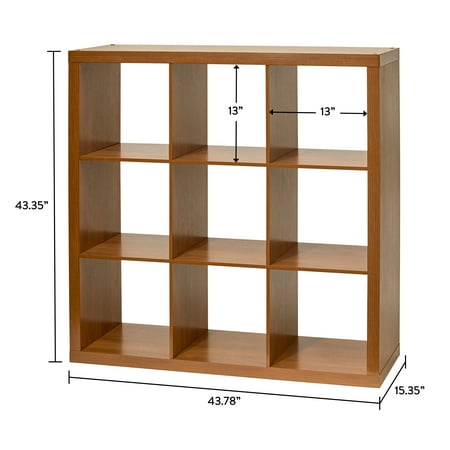 Add function and style to your home with the Better Homes & Gardens 9-Cube Storage Organizer. Available in multiple finishes, including both solid and wood grain options, this cube organizer features nine 13" x 15" x 13" compartments, the perfect size to display books, collectibles, photos, artwork, storage bins and baskets. An open back design makes it easy to manage cords and cables. The top panel of this sturdy bookcase supports up to 100 lbs and each cube supports up to 30 lbs. Combine it with other Better Homes & Gardens Cube Organizers and Cube Storage Bins (sold separately) to create a complete, customized storage and display system. Easy to assemble with included wall attachment system, the Better Homes & Gardens 9-Cube Storage Organizer is perfect for your office, living room, den, playroom and more.