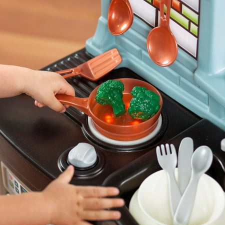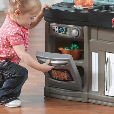 The Step2 Best Chefs Kitchen is a toddler playset with fresh colors meant to complement any play area! This kid’s kitchen was designed for girls and boys ages 2 to 6 years means the play experience will last for years. This play kitchen has many realistic features such as a stove top burner that makes sounds, clicking knobs, oven and refrigerator doors that open and close to add to the realism. Additional realistic features this kid’s playset was designed with include a stainless-steel sink and hardware, tile back splash and lots of storage space for storing the 25 accessories included. A few of the kitchen included are a plastic coffee pot, silverware, plates and more! The accessories can be hung on hooks or stored in either the oven or refrigerator. Best of all, this play kitchen is made with sturdy plastics and comes with a 2-year limited warranty!