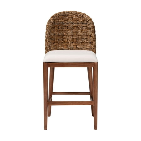 Grant an aura of exotic temperament to your space with the stunning Denver counter stool. Made in Indonesia, this bohemian piece consists of a sturdy acacia wood base ornamented with a woven seagrass backrest. The seat is padded with plush layers of foam and upholstered in sumptuous fabric for cozy comfort with the rounded backrest offers a smooth embrace. The Denver will arrive fully assembled and features an ergonomic footrest to encourage casual relaxation. Marrying rustic flare with chic leisure, the Denver counter stool transforms the feel of any occasion. Disclaimer: Materials used are products of nature and may have variations in areas such as, but not limited to, color, pattern, grain and texture. The hair-like strands of rattan/rattan-like fiber are common due to the nature of the material. Overall: 16.90" W x 19.70" D x 36.20" H; Seating(s) : 16.90" W x 16.10" D x 23.00" H; Backrest: 13.50" H; Clearance(floor to bottom of stretchers): 6.70" H;