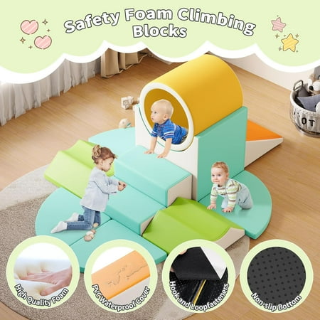 Encourage your toddler's active play with this versatile Soft Play Climbing Set from Wanan. Crafted with high-quality, durable foam and PVC materials, these 11 colorful climbing blocks can be arranged in various shapes to stimulate your child's imagination and develop their motor skills. Perfect for use in nurseries, playrooms, or bedrooms, this lightweight and easy-to-clean set allows your little one to climb, crawl, and slide, promoting physical development and social interaction. With its vibrant hues and sturdy construction, this toddler climbing toy is a must-have for any active household.