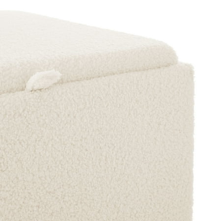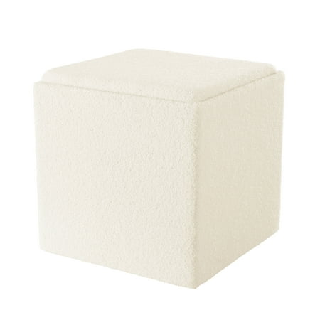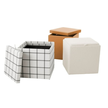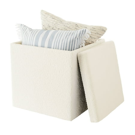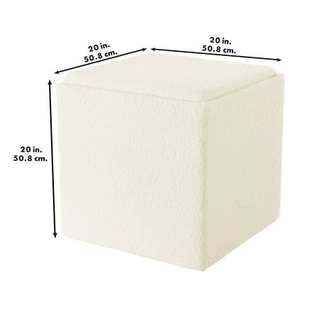 Mainstays Large Cube Storage Ottoman, Cream. Keep all your rooms and spaces tidy and organized around the house, but with a modern decorative touch. This reliable ottoman measures 20" x 20" x 20" and is perfect for everyday storage around your house. These Storage Ottomans have a removable top for easy access to their inner storage compartment. Tuck away those unseemly household items lying around! This discreet ottoman doesn't even look like a storage unit - your house guests will never know what's inside! Ideal for clearing clutter and providing extra storage to maximize your unused space. This ottoman is sure to create a finish that will fit the décor of any room, providing extra space and seating areas in the room of your choice. Whether it's the bedroom, living room, den, family room, nursery or any other room of your choice, Mainstays large cube storage ottoman is the right choice for redecorating this season.