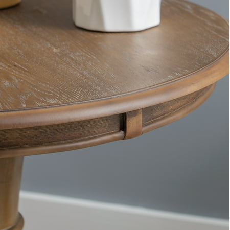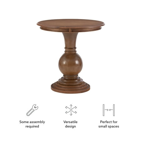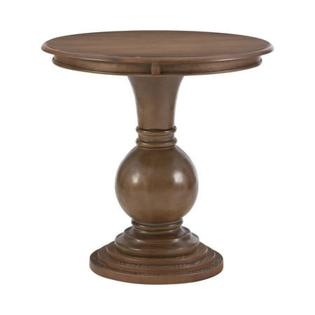 This circular Powell Elissa accent table features a stepped base and turned pedestal that come together to create a timeless and sophisticated piece. Measuring at 26” L X 26” D X 26” H, it is ideal for placement next to a couch or set of chairs in your living room, as an extra surface in your bathroom or as additional table space wherever you like to entertain. The natural finish lends itself to a rustic charm, highlighting slight imperfections and blemishes in the wood. Simple assembly is required upon arrival.