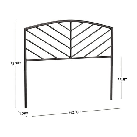 Essex Metal Queen Headboard, Gray Bronze Looking for a queen-size headboard that matches your style: a little bit of everything? Trendy chevron design lend this queen-size metal headboard with touch of modern style while a gray bronze finish over durable steel adds a pinch of farmhouse flavor without sacrificing warmth and softness. Overall, this queen-size headboard is just like you: the best of everything, fashionable and on-trend, with a little bit of edge. Includes headboard only. Bed frame, mattress and box spring not included. Assembly required. Chic modern queen-size arched headboard with chevron spindles Gray bronze finish lends an antique feel to a modern silhouette Durable fully welded metal construction ideal for daily use or your guest room Headboard Dimensions: 51.25H x 60.75W x 1.25D Assembly required Headboard will ship in one box Includes headboard only; frame, box spring and mattress required, not included Wipe clean with dry cloth Traditional design with a touch of modern flair complements any décor For residential use only - Material: Metal - Number of Pieces: 1 Queen Headboard - Collection Name: Essex - Assembled Product Height (inches): 51.25 - Assembled Product Width (inches): 60.75 - Design Style: Modern - Metal Finish: Gray Bronze - Assembled Product Weight (lbs): 12 - General Color: Grey - Item Shape: Rectangular - Assembled Product Length/Depth (inches): 1.25 - Metal Type: Steel - Construction Type: Metal - Adjustable (Y/N): No - Upholstered (Y/N): No - Vendor Color: Gray Bronze - Are Batteries required?: No - Commercial Grade: No
