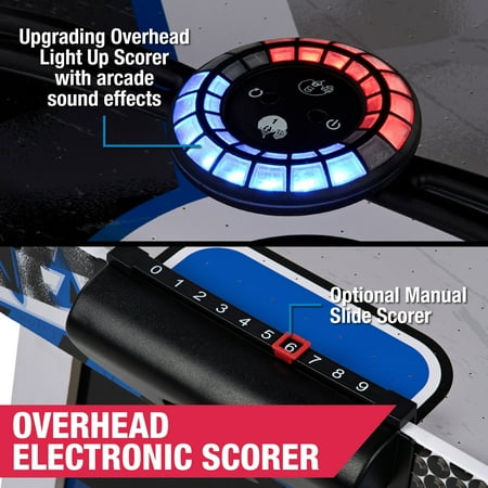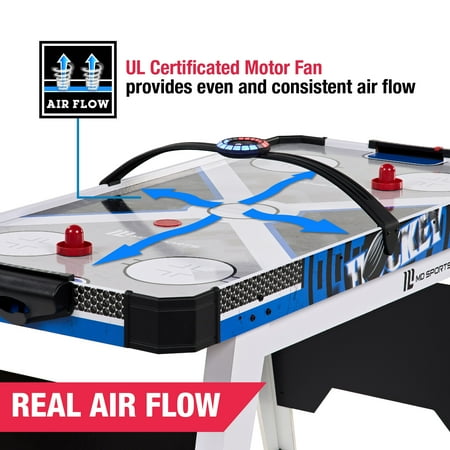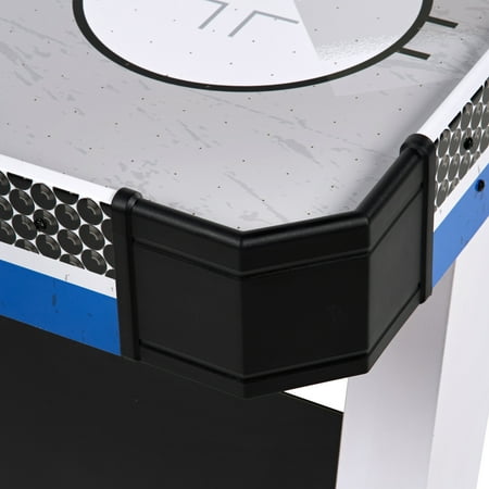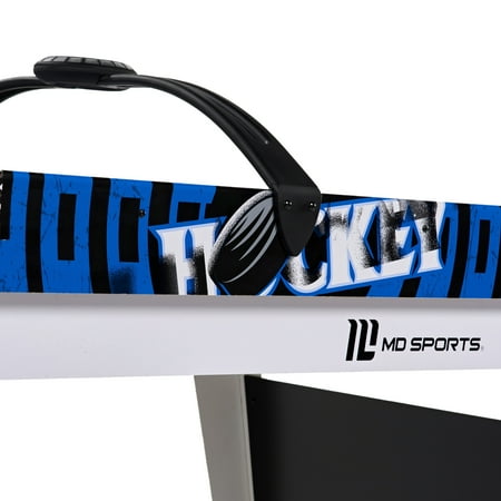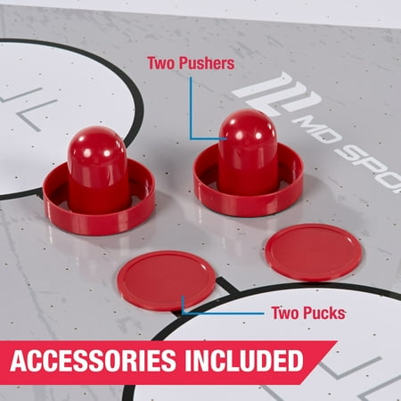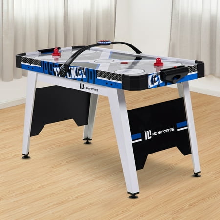 The MD Sports Air Hockey Table is a great way to bring fast-paced fun to your game room. With overall dimensions of 54" x 27" x 32", it's a great fit for teens and adults ages 13 and up. The smooth, high-gloss surface helps the puck glide quickly, and the sturdy MDF construction is built to last. It includes adjustable leg levelers for a flat playing surface and angled legs for extra stability. The digital overhead scoreboard keeps track of points and game time, while a powerful 12V motor keeps the puck moving with steady airflow. It comes with 2 pushers and 2 pucks, so you can start playing right away. At just over 36 pounds, it’s easy to move and set up, making it a fun and practical addition to any home.