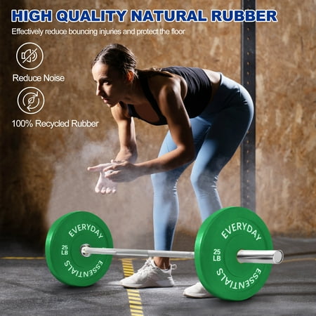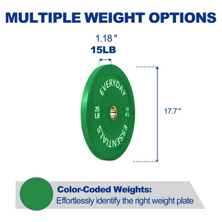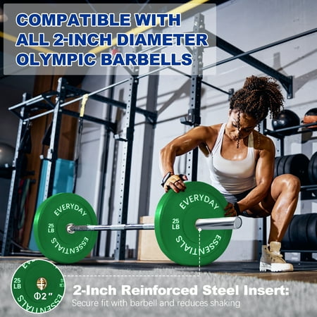 BalanceFrom Olympic Bumper Plates - Sold in Pairs or Sets - Available in Black or Color Whether you're a seasoned lifter or just starting your fitness journey, our bumper plates are the perfect addition to your home or commercial gym. Crafted for durability, ease of use, and versatility, these plates offer a wide range of weight options to suit your fitness needs. Here's why they're your go-to choice: Sold as Pairs and Sets: Pairs Available in: 10, 15, 25, 35, 45, and 55 pounds Sets Offered: 160 Pounds Set: 2x10LB + 2x25LB + 2x45LB Plates 210 Pounds Set: 2x25LB + 2x35LB + 2x45LB Plates 260 Pounds Set: 2x10LB + 2x15LB + 2x25LB + 2x35LB + 2x45LB Plates 370 Pounds Set: 2x10LB + 2x15LB + 2x25LB + 2x35LB + 2x45LB + 2x55LB Plates Key Features at a Glance: 2" Inner Ring Diameter: Compatible with Olympic barbells. Total Diameter: 17.75": Ensures a secure fit on the bar and provides stability during lifts. High-Density Rubber Plates: Designed for durability, they can withstand the demands of intense workouts. Solid Stainless Steel Insert: Provides a secure and snug fit on the barbell, preventing shifting during exercises. Pairs or Sets: Choose individual pairs or opt for a complete set to kickstart or expand your weight collection. Our bumper plates offer consistent and reliable performance, perfect for powerlifting, Olympic lifting, and cross-training. Elevate your fitness routine with quality and versatility - choose our bumper plates for your next workout.
