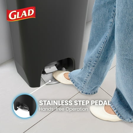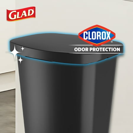 Keep your home or office clean and organized with the Glad 13-Gallon Kitchen Trash Can. Designed with a classic rectangular shape and tall, slim profile, this large-capacity waste bin is perfect for busy households, offices, or shared spaces. The durable plastic construction ensures long-lasting use while remaining lightweight and easy to maintain. This trash can features a lid formulated with Clorox Odor Protection, designed to help block and trap unwanted smells for the life of the can, keeping your space fresher and more inviting. The hands-free step pedal is made of stainless steel for enhanced durability and provides convenient, touch-free operation so you can dispose of garbage without lifting the lid or using your hands, promoting cleanliness and hygiene in your environment. The interior bag ring liner securely holds trash bags in place, preventing them from slipping or creating messy overhang. This simple but effective design detail ensures your garbage stays contained while maintaining a neat, clutter-free appearance. Measuring 14.7"L x 18"W x 25"H, this slim-profile trash can fits neatly against walls, cabinets, or in tight spaces without taking up unnecessary room. With a 50-liter capacity, this versatile kitchen trash can from Glad is ideal for kitchens, bathrooms, offices, and commercial settings where a reliable and odor-blocking waste solution is essential.