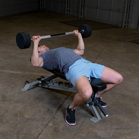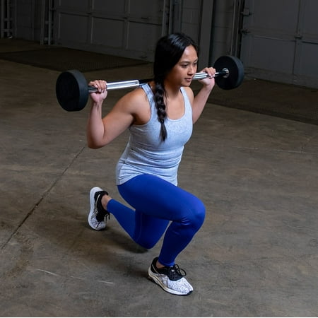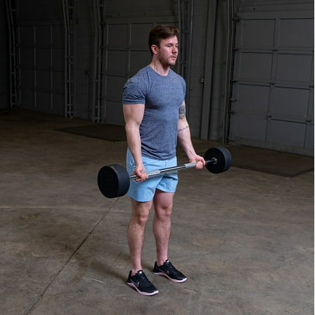 Body-Solid Tools SBB Fixed-Weight Straight Barbells are available in 10 weight options (20-110 lbs) and offer a convenient, time-saving barbell option. Constructed with high-quality precision weighted steel inserts encased in durable rubber, Body-Solid Fixed-Weight Straight Barbells eliminate the need for weight plates and are a perfect fit for any-sized fitness facility, group workout facility or home and garage gym. Each SBB features precise knurled grips to ensure safe and secure handling even during intense workouts.