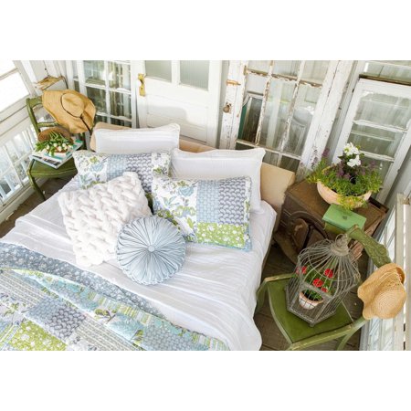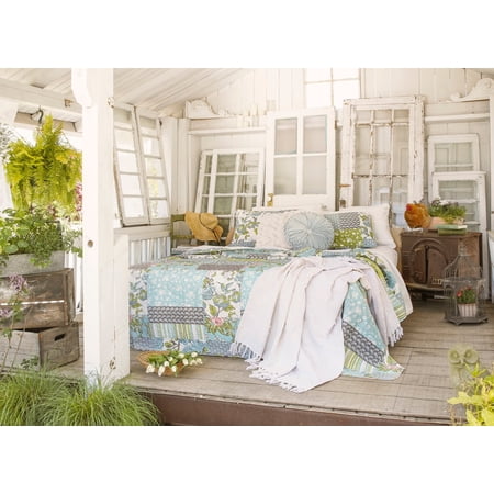 This gorgeous cotton quilt set is perfect for a farmhouse or country style bedroom. Beautiful floral prints are combined in a patchwork style in this Roesser Quilt 3 Piece Set to create a soft and inviting design perfect for a calm and soothing atmosphere. The reverse features a floral print on a neutral bluish gray color. This gives you the option of a more subdued look or a nice layered look. If you are a fan of a more southern country decor style, the Roesser Quilt 3 Piece Set can fit in perfectly with your tastes. It would make a lovely addition to a master bedroom or guest bedroom. The Roesser Quilt 3 Piece Set includes a soft cotton reversible quilt and two matching pillow shams. It is available in your choice of Full/Queen or King Sizes. This Roesser Quilt 3 Piece Set is made of 100% cotton front fabric and is very soft with a 320 thread count. Lush Decor has enhanced its products for your health and well-being. This Roesser Quilt 3 Piece Set is STANDARD 100 by OEKO-TEX® certified, which means the fabric, dyes and all components have been tested in an independent laboratory and certified against a list of more than 350 harmful substances. This set is safe to machine wash and tumble dry. Follow all care instructions on the label to maintain the integrity of the quilt set. Part of the Roesser Collection. 3-Piece Set Includes: 1 Quilt, 2 Shams Full/Queen: Quilt: 92"H x 88"W; Shams: 20"H x 26"W King: Quilt: 92"H x 108"W; Shams 20"H x 36"W Fabric Content: 100% Cotton Fill Content: 55% Cotton, 45% Polyester 200 GSM 320 Thread Count Reversible Floral Patchwork Look Printed STANDARD 100 by OEKO-TEX® certified Made In China Care Instructions - Machine Wash Cold, With Similar Colors, Gentle Cycle. Use Only Non-Chlorine Bleach When Needed. Tumble Dry Low, Light Iron if Needed.
