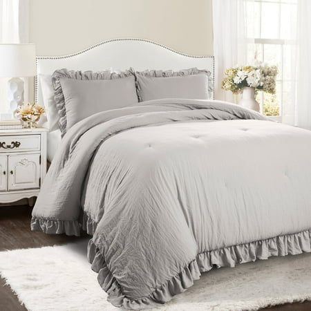 New from the Reyna Collection is this beautiful comforter set with a frilly ruffled border which will brighten any bedroom. This set is perfect for the lovers of minimalist, farmhouse, boho or shabby chic design styles. The ruffles on the comforter and the pillow shams create a whole new dimension to the bedroom. The Reyna 3 Piece Comforter Set has a calming effect, adding a touch of elegance with its frilly look on solid color. The Reyna 3 Piece Comforter Set includes a soft and luxurious 230 GSM comforter and two matching pillow shams. The pillow shams even have the same ruffled edges! This set is available in Full/Queen, King and California King sizes in many solid color options, making it easy to match the rest of your decor. Some colors may not be offered in all three sizes. We have enhanced our products for your health and well-being. This Reyna 3 Piece Comforter Set is STANDARD 100 by OEKO-TEX® certified (in pure white color only), which means the fabric, dye and all components have been tested in an independent laboratory and certified against a list of more than 350 harmful substances. Due to the delicate nature of the ruffles along the comforter and shams, your Reyna 3 Piece Comforter Set should be dry cleaned. Part of the Reyna Collection. 3-Piece Set Includes: One Comforter, Two Pillow Shams Full/Queen: 96"H x 92"W, Shams: 20"H x 26"W + 2.5" Ruffle King: 96"H x 110"W, Shams: 20"H x 36"W + 2.5" Ruffle California King: 96"H x 120"W; Shams: 20"H x 36"W + 2.5" Ruffle Fabric Content: 100% Polyester Fill Content: 100% Polyester 230 GSM Comforter 248 Thread Count Textured Solid Color Ruffles STANDARD 100 by OEKO-TEX® Certified (pure white color only) Made In China Care Instructions - Dry Clean Highly Recommended.