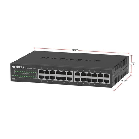 Auto-MDI/MDIX eliminates the need for crossover cables,LED indicators for ease of use,Energy-efficient technology for power savings,Fanless design for silent operation,Auto-negotiation for automatic connection at the highest common speed between switch and an end device,Non-blocking switching architecture for maximum throughput at wire speed,802.1p QoS for traffic/frame prioritization,Plug-and-play; no setup required,Durable and rugged metal case,Desktop or wall-mountable (5, 8, 16-port models); GS324 is desktop, wall-mountable, and rack-mountable (rack-mount kit included); GS348 is rack- mountable (rack-mount kit included),Ideal for small office and home networks,Standards-based technology ensures interoperability with any standards- based devices in the existing network,Power up to 4 PoE-capable devices (GS305P/GS305PP and GS308P only),802.3af Power Over Ethernet (PoE) for IP cameras, VoIP/Internet-based phones, wireless access points (GS308P only)
