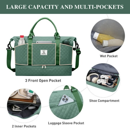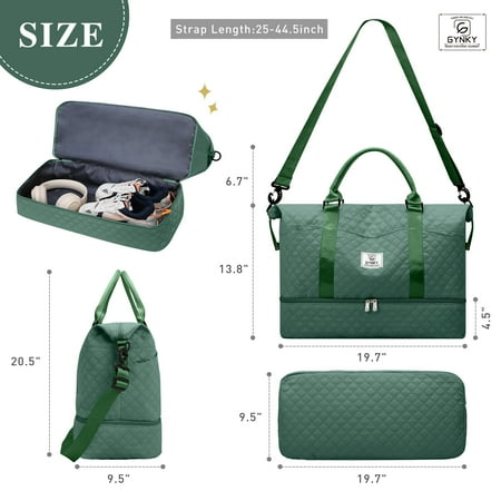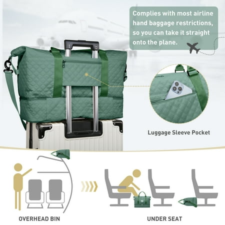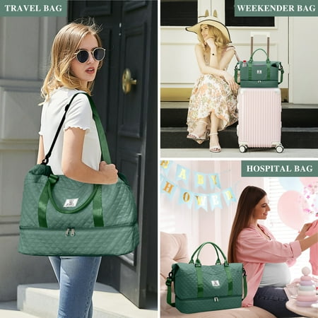 Introducing our meticulously crafted Travel Duffle Bag, designed specifically for discerning travelers seeking both style and functionality. This travel bag for women combines elegance with practicality, making it an essential companion for your journeys. As a versatile travel duffle bag, it meets most international carry-on requirements, ensuring seamless travel experiences without the hassle of checked luggage. Our premium duffle bags are made with fine craftsmanship, showcasing attention to detail in every stitch. The high-quality materials ensure durability, making it a reliable travel companion for years to come. The spacious interior is complemented by multiple pockets, offering ample storage solutions for all your travel essentials. Whether you're using it as a weekender bag, an overnight bag, or a carry-on bag, this travel bag adapts to your needs effortlessly. A standout feature of this travel duffel bag is the dedicated shoe compartment, designed to keep your footwear separate from your clothes, thus maintaining hygiene and organization. Additionally, the wet pocket provides a convenient solution for storing damp items like swimwear or toiletries, ensuring the rest of your belongings remain dry and protected. This duffle bag is not only a travel bag for women but also suits men, making it a versatile choice for anyone looking for a reliable traveling bag. With multi ways to use, you can carry it by hand, over the shoulder, or as a crossbody bag, providing flexibility and comfort during your travels. The travel duffle bag is spacious yet compact, fitting snugly into overhead compartments as a carry on bag or carryon bag for travel. Its large capacity ensures you have all you need, whether you're heading for a weekend getaway, a business trip, or a hospital stay. As a travel duffel bag for women or a duffel bag for men, it’s an exceptional choice for anyone seeking a stylish and functional bag for travel. Choose our travel duffle, and experience the perfect blend of elegance, practicality, and durability, making every journey an enjoyable adventure.