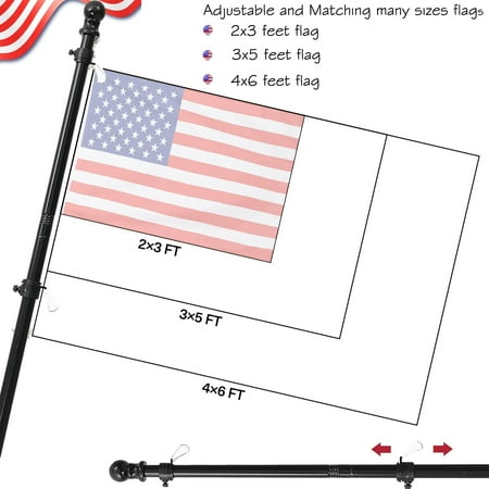 Flag Pole for House Outside, 6ft Heavy Duty Flag Pole Kit, Tangle Free Steel Black Flag Pole for Residential, Commercial, Outdoors Garden