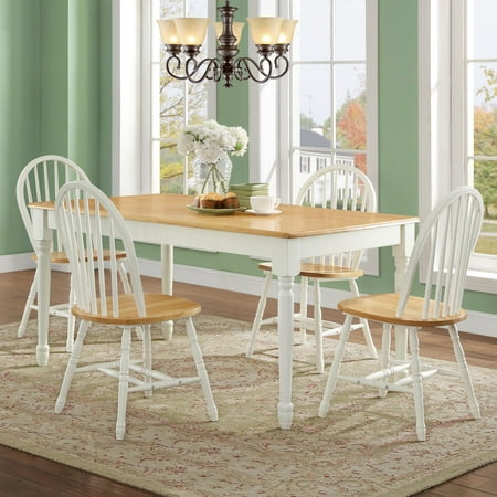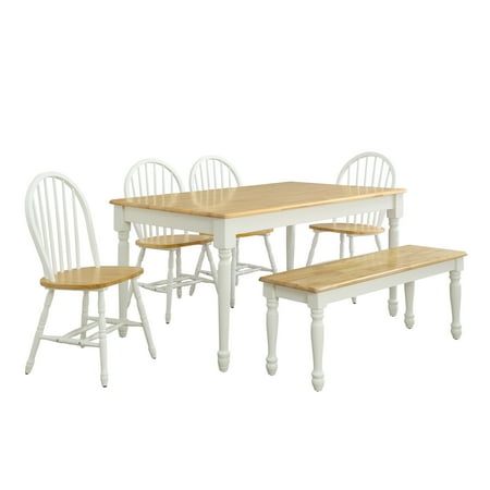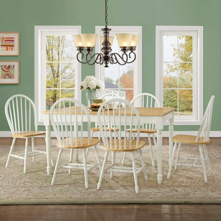 Update your dining room with this spacious Better Homes & Gardens Autumn Lane Farmhouse Dining Table. It features a sturdy design with turned legs crafted from solid wood and sturdy tabletop. The traditional style complements almost any interior decor or furniture style from modern and contemporary to rustic and minimalist and all things in between. The finish provides a versatile look that can work well in a kitchen, dining area, or any other area in the house; it can even be used as a desk in your study or home office. Available in three finish options, you can choose from a two-tone Black and Warm Oak, White and Natural or a solid Black finish. The large table can sit up to six people, making it ideal for entertaining extended family or guests. It is easy to assemble so you can start to enjoy it quickly. Add the Autumn Lane Windsor chairs and Farmhouse bench (sold separately) to this traditional dining table and provide plenty of comfortable seating for everyone.