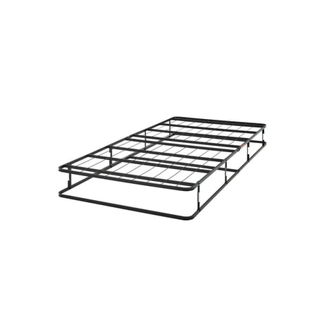 Durably support your mattress with the superior design and construction of Mainstays Fold-in-Half Metal Box Spring in Twin, Black. This Heavy Duty box spring boasts heavy-gauge premium steel bars throughout to provide comfortable, trusted support for your mattress. Easily folds away into a flat, compact size, ideal for easy storage and transport no matter where you go. The included coverlet fits onto the box spring and zips on for a secure fit and effortless cleaning when required and never fuss with your mattress moving out of place with the coverlet's non-slip surface. Mainstays 7.5" Half-Fold Metal Box Spring in Black Steel offers a modern and more durable solution to conventional wood box springs, providing a naturally sanitary structure that is mold and even bed bug resistant. Ultra easy to set up in your home, this Fold-in-Half Metal Box Spring from Mainstays requires zero assembly - just unfold, zip on the cover and you're ready to use, ideal for use in any room from bedrooms to dorms or guest rooms and is sure to provide you with a durable, clean, and supported sleeping environment.