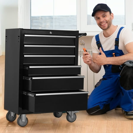6-Drawer Rolling Tool Chest Cabinet, Large Capacity Metal Tool Box with Wheels