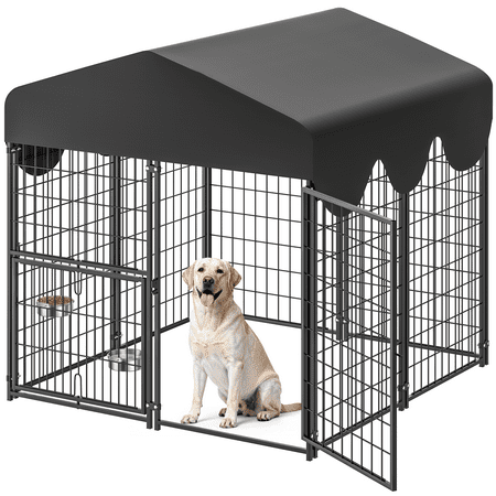 Suchown Dog Kennel Outdoor with Roof – Heavy Duty Dog Run, Large Dog Crate with Waterproof Cover, Rotating Feeder & Secure Lock, Expandable Dog Fence for Small to Large Dogs, 4' x 4.25' x 4.5'