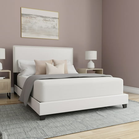 Willow Nailhead Trim Upholstered Queen Bed, White Faux Leather
