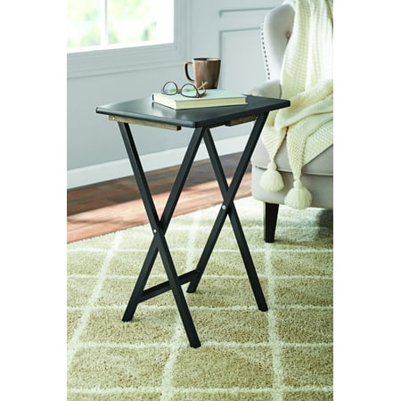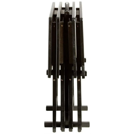 Enhance your living space with the Mainstay Indoor 5-Piece Folding Tray Table Set – a stylish and practical addition designed to elevate your home. This set includes four folding tray tables and a smartly crafted storage rack, providing both convenience and versatility. Mainstay folding table dimension L 19.09 X W 14.57 H 26 inch. Mainstay indoor folding table assemble height is 26 inch and weight combine weight of 4 table is 14.28 KG. Mainstay Mainstay Indoor 5-Piece Folding Tray Table Set comes with 4 tables + 1 storage rack, storage rack need to be assembly which is very easy to assembly the rack. Mainstay indoor folding tray table comes with assembly instruction provided in 2 languages English and Spanish in which each assembly steps described very clearly with drawing this helps the user to assembly the rack within no time. Mainstay indoor folding tables are best space saving its black color finish complements any home decor. Upgrade your home with the Mainstay Indoor 5-Piece Folding Tray Table Set – where practicality meets style for a harmonious living experience.