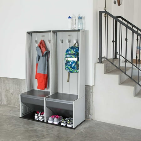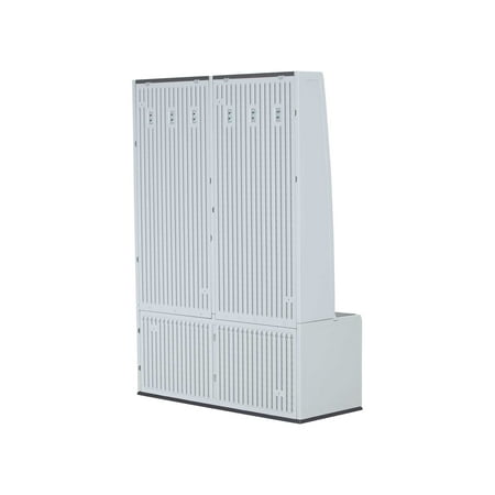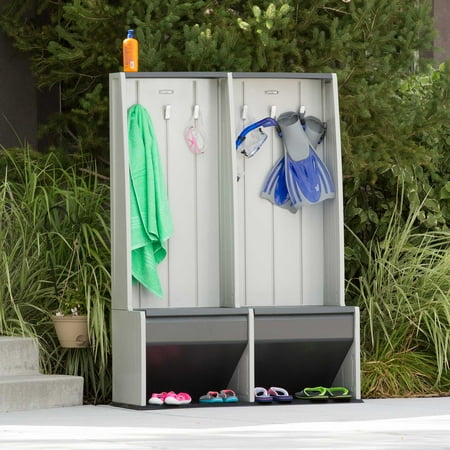 Get a fresh perspective by decluttering your home and having a space dedicated to organization and convenience. With the Lifetime Double Storage Locker, easily create a space around your home, garage, mudroom, or entryway where you can store footwear, outerwear, and a wide variety of items. For both adults and children, the open locker design provides easy access and visibility to your stored items. Hang your backpacks, bags, jackets, coats and hats on the 6 metal storage hooks. The built in storage compartments double as durable benches. Store up to four pairs of shoes in the storage cubby. Enjoy the strength, rigidity, and impact resistance provided by the Double Wall Systemâ„¢ and steel reinforced design. It is easy to keep your storage locker looking great thanks to the low maintenance and UV-protected build. Keep your home decluttered and well organized with the Lifetime Double Storage Locker.