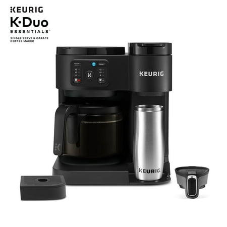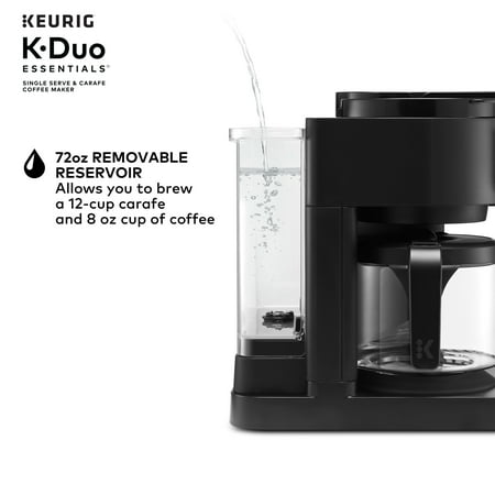 The Keurig K-Duo Essentials Coffee Maker is the ideal brewer for any coffee occasion. It brews single cups using K-Cup pods AND full carafes of your favorite coffee grounds – all in one compact unit. It features a large 72 oz. removable water reservoir that feeds both sides of the brewer, which means faster, easier brewing with fewer refills. The single-cup side brews all your favorite K-Cup pod flavors in your choice of 8, 10, or 12-oz sizes. It offers the Brew Over Ice option for making refreshing iced coffees or teas, as well as the Strong Brew option, which makes a bolder, more intense flavor for your cup. On the carafe side, you can drip-brew full pots of your favorite grounds in 8, 10, or 12-cup sizes. It features a glass carafe and heating plate for keeping your coffee hot, as well as the Pause & Pour feature which allows you to pause mid-brew to serve fresh, hot coffee. Whether you’re serving a crowd or serving yourself, whether you need a pot of regular and a cup of decaf…no matter the situation, the K-Duo Essentials is the perfect solution. Available exclusively at Walmart.